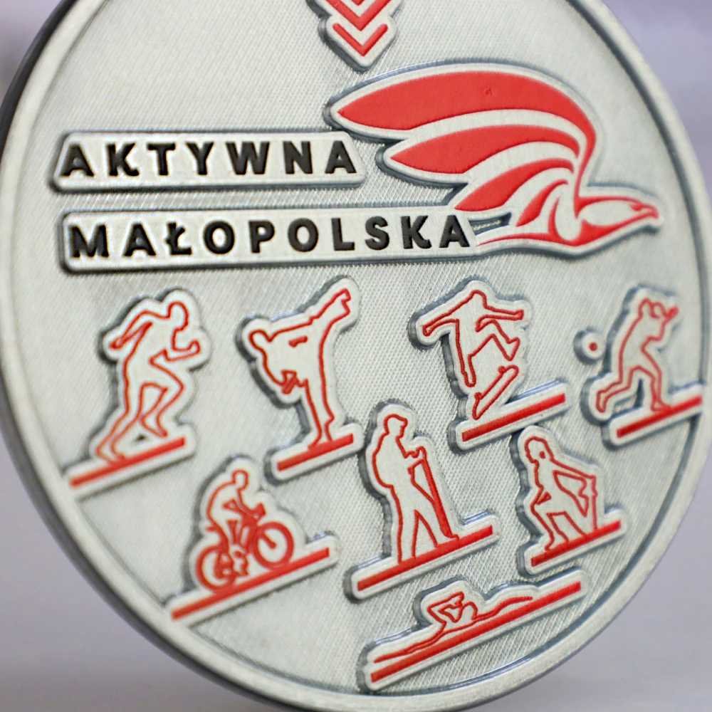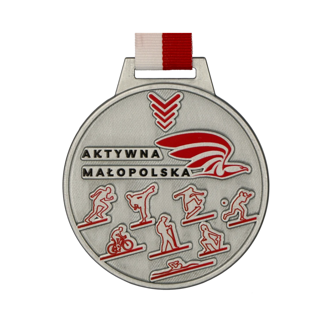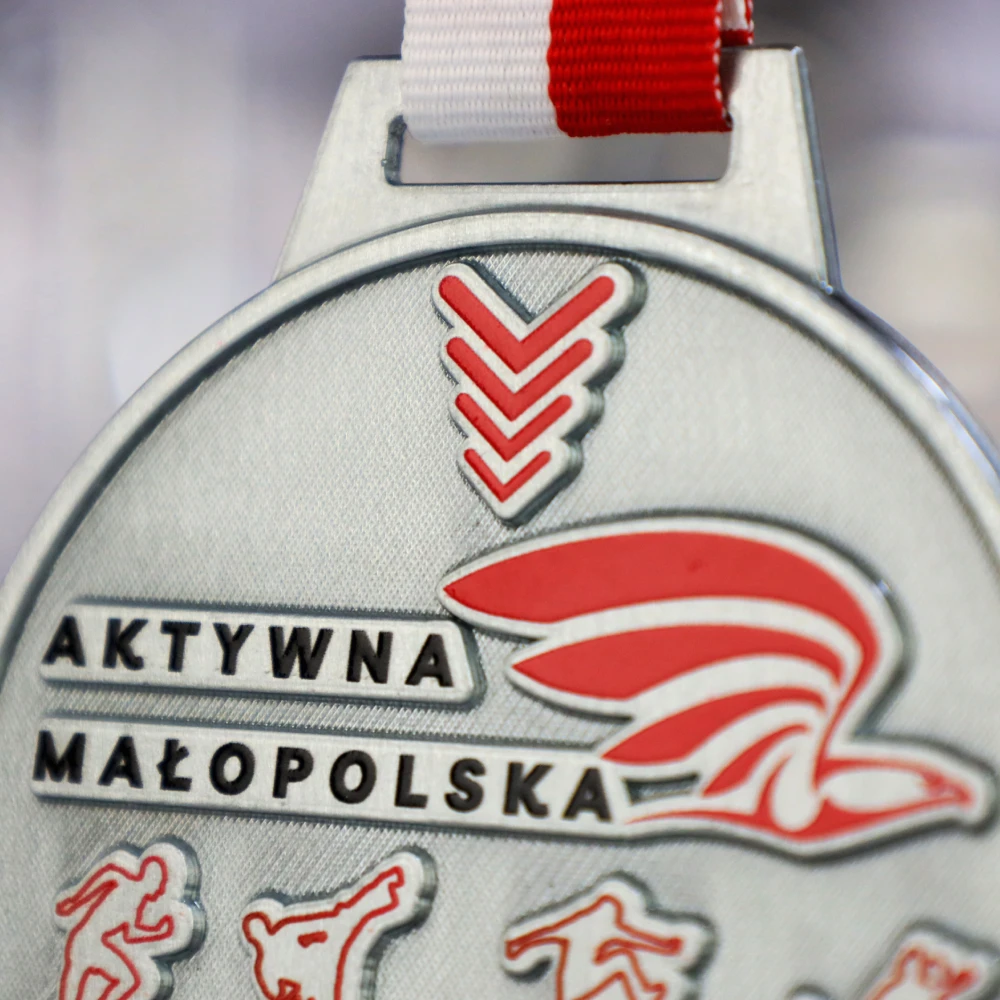 Medal odlewany Vision, czyli odlew połączony z nadrukiem UV. Organizator zapewnił uczestnikom biorącym udział w projekcie „Aktywna Małopolska” dwustronną nagrodę. Awers (przód) przedstawia kilka dyscyplin sportowych oraz nazwę i logo nadrukowane na odlewie, powierzchnie płaskie wykończyliśmy fakturami – tą technikę obróbki medali można spotkać tylko u Nas.