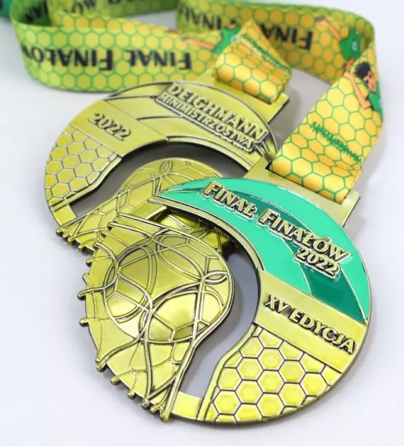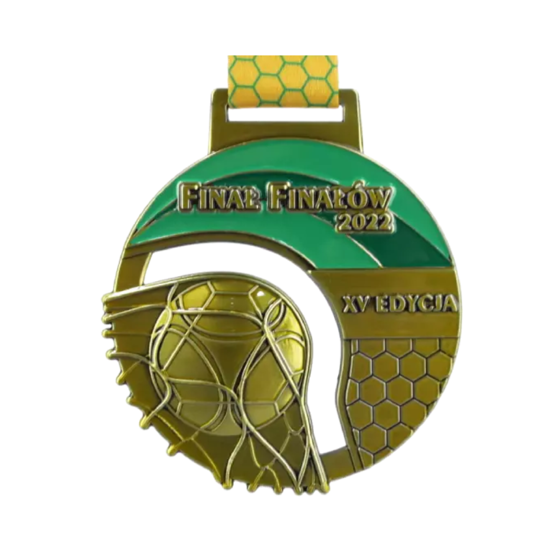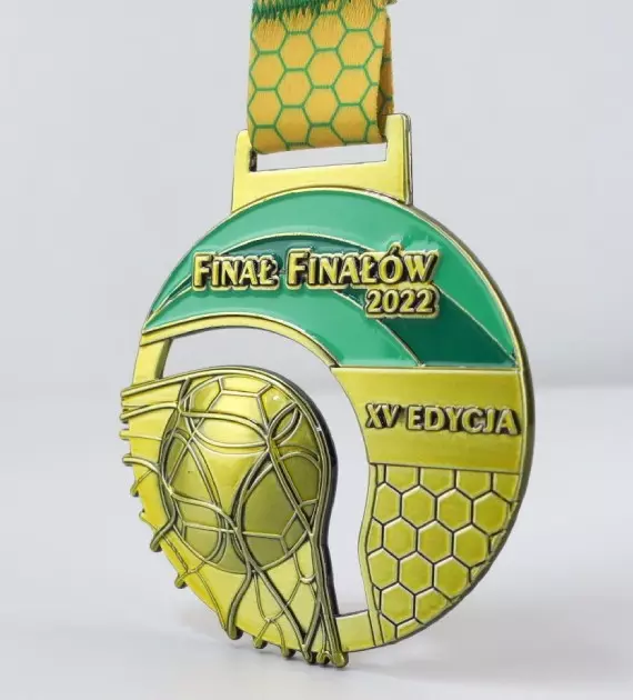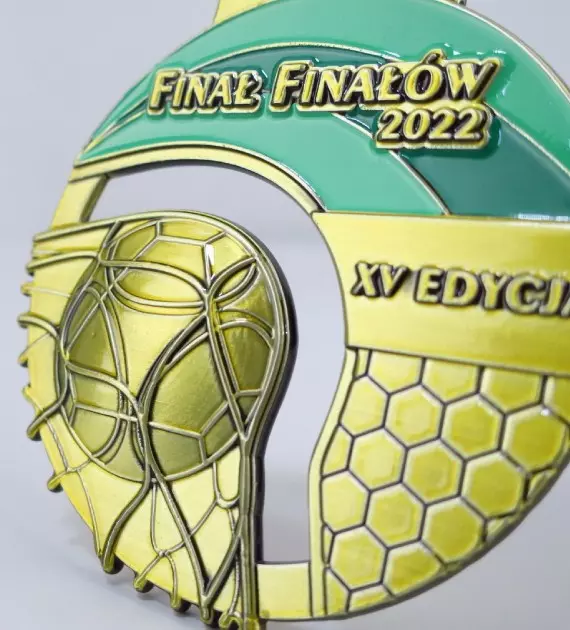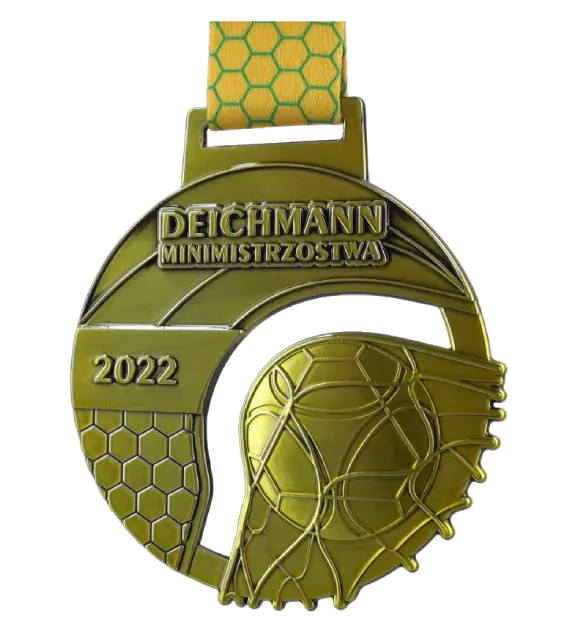 Medal odlewany 3D z przetłoczeniami dwustronnymi na Finał Finałów Mistrzostw Deichmann w piłce nożnej dzieci. Jest to jeden z najbardziej prestiżowych turniejów dla dzieci, który odbywa się w całej Polsce w której rywalizują dzieci z poszczególnych województw a następnie zwycięski finał rozgrywany jest we wcześniej ustalonej lokalizacji.