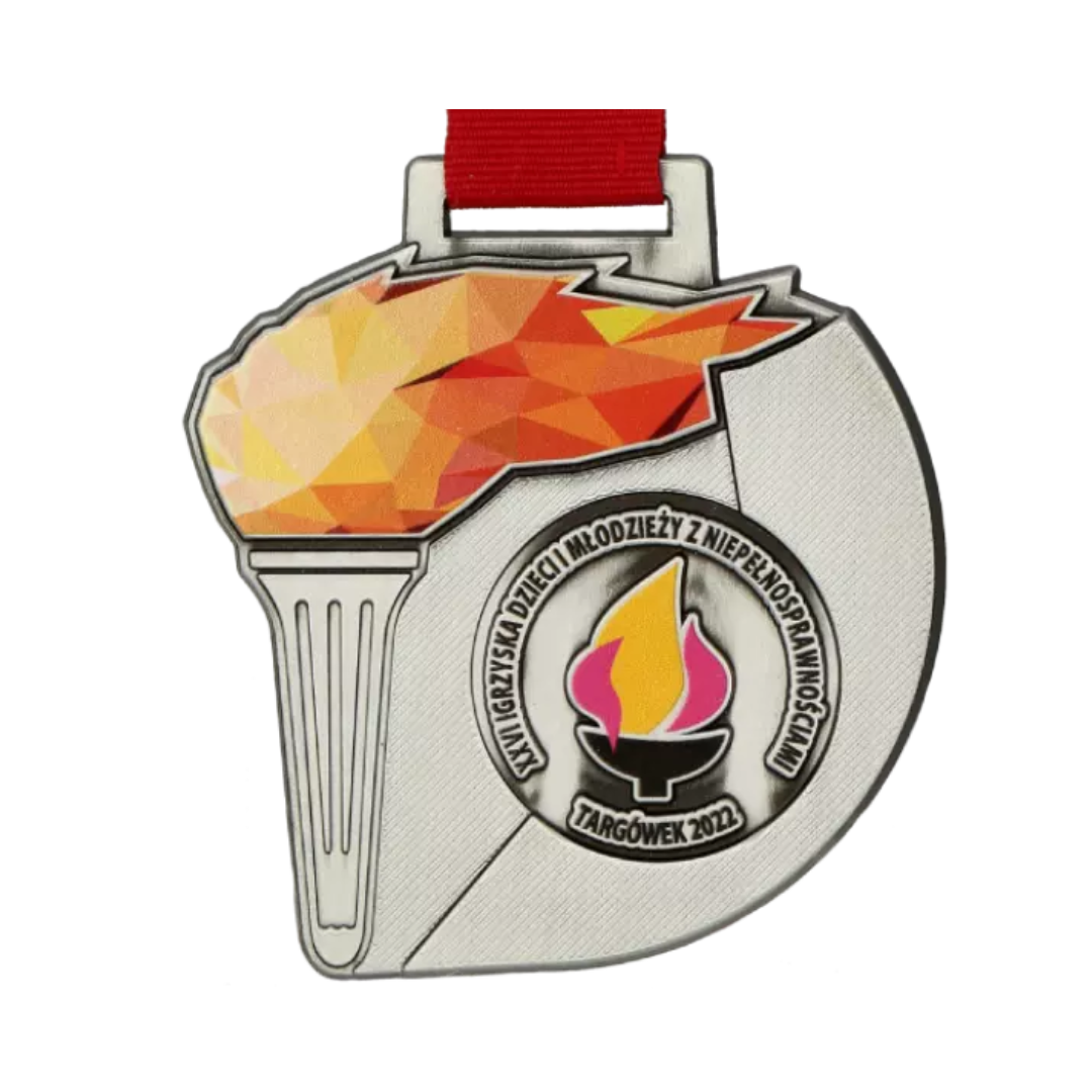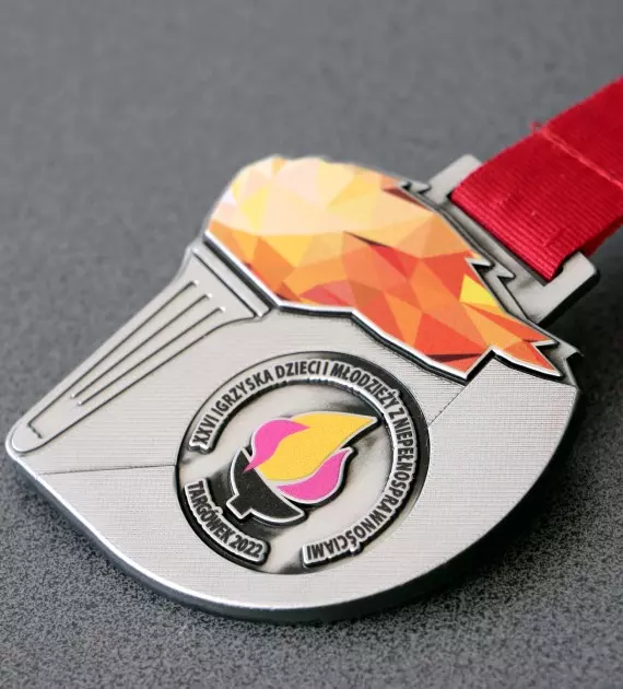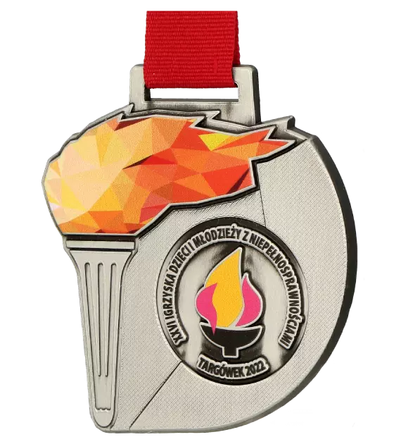 Medal odlewany Vision z nadrukiem UV. Przygotowany na Igrzyska Dzieci i Młodzieży z Niepełnosprawnościami. Jako że to igrzyska nie mogło obyć się bez znicza olimpijskiego! Organizowana od 30 lat impreza pod hasłem ,,Zwycięstwo jest w Tobie” daje szansę rywalizacji dzieciom w trzynastu różnych dyscyplinach.