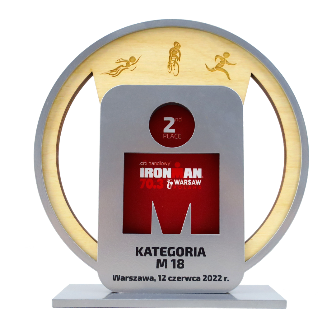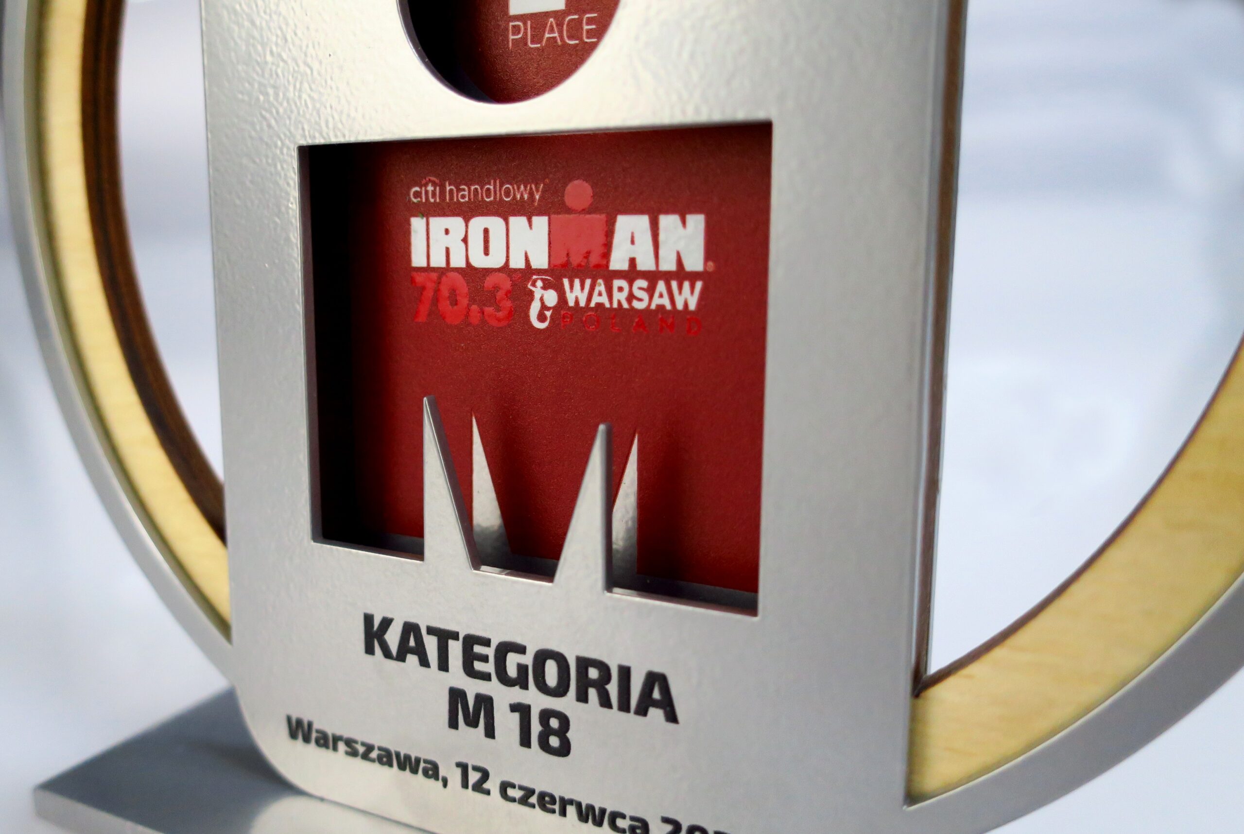 Iron Man 70.3 Warsaw to ogromny wysiłek w samym centrum stolicy naszego kraju. Na najlepszych uczestników zawodów na mecie czekały wyjątkowe, stworzone przez nas trofea.