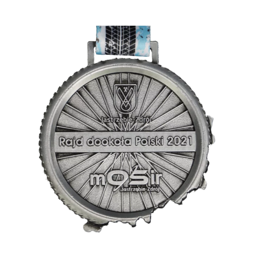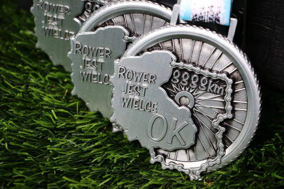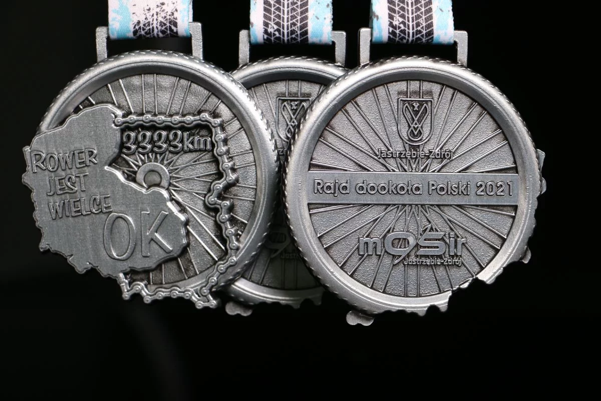 Medal odlewany 2D dwustronny, na rajd rowerowy dookoła Polski. Aby przejechać wymagające 3333 km w tym rajdzie potrzebne są dobre dwa kółka, świetna kondycja i jeszcze lepsza wytrwałość w dążeniu do celu i zdobyciu naszego medalu.