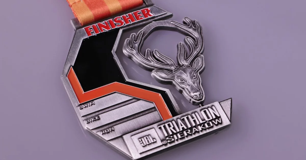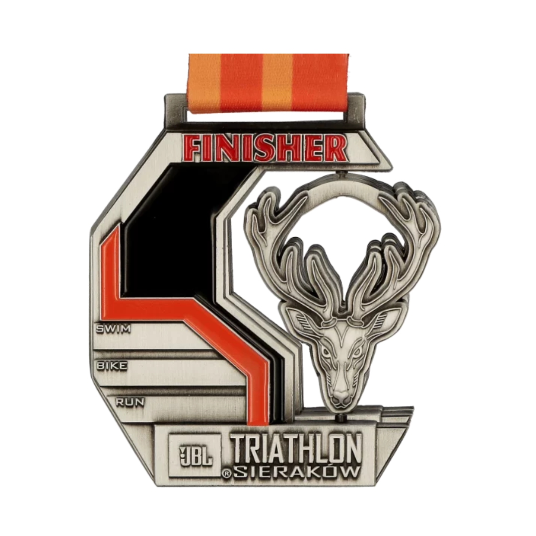 Medal odlewany 3D, obrotowy wykonany po raz kolejny u nas do Triathlon Sieraków 2021. 1,5 km pływania, 40 km jazdy na rowerze i 10 km biegu a w nagrodę dla zawodników którzy ukończyli zawody nasz medal. Jesteśmy dumni z tego produktu gdyż robi kapitalne wrażenie. Odlew 3D z przetłoczeniami w połączeniu z emalią i elementem obrotowym zgrały się idealnie.