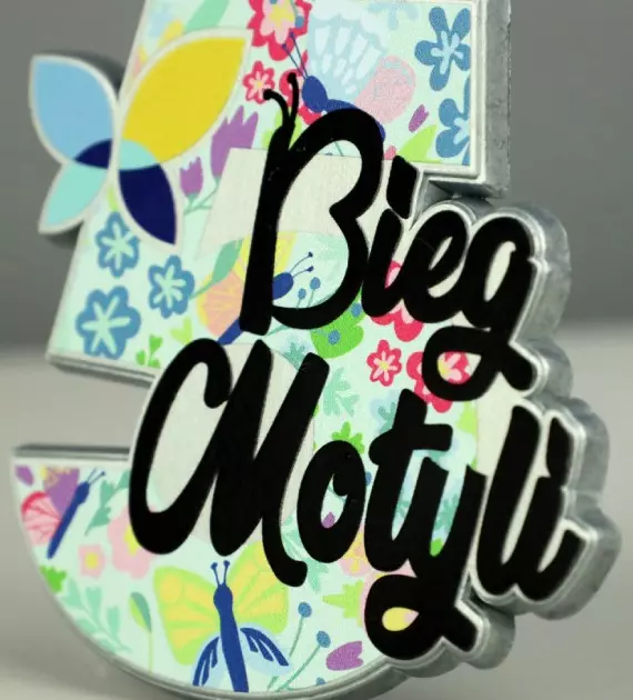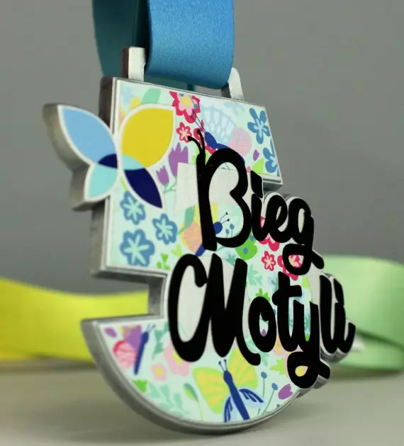 Medal odlewany Vision z nadrukiem UV na jego całej powierzchni. Na Bieg Motyli przygotowaliśmy barwny, kolorowy medal odpowiadający jego nazwie w całości pokryty kolorowym, trwałym nadrukiem UV. Impreza to bieg charytatywny którego organizatorem jest Hospicjum Palium a trasa biegnie wokół jeziora Maltańskiego w Poznaniu. Medale Vision charakteryzują się możliwością ponownego wykorzystania odlewu, a nadruk możemy zaprojektować na nowo, to innowacyjny sposób na oszczędność i imprezy odbywające się cykliczne.