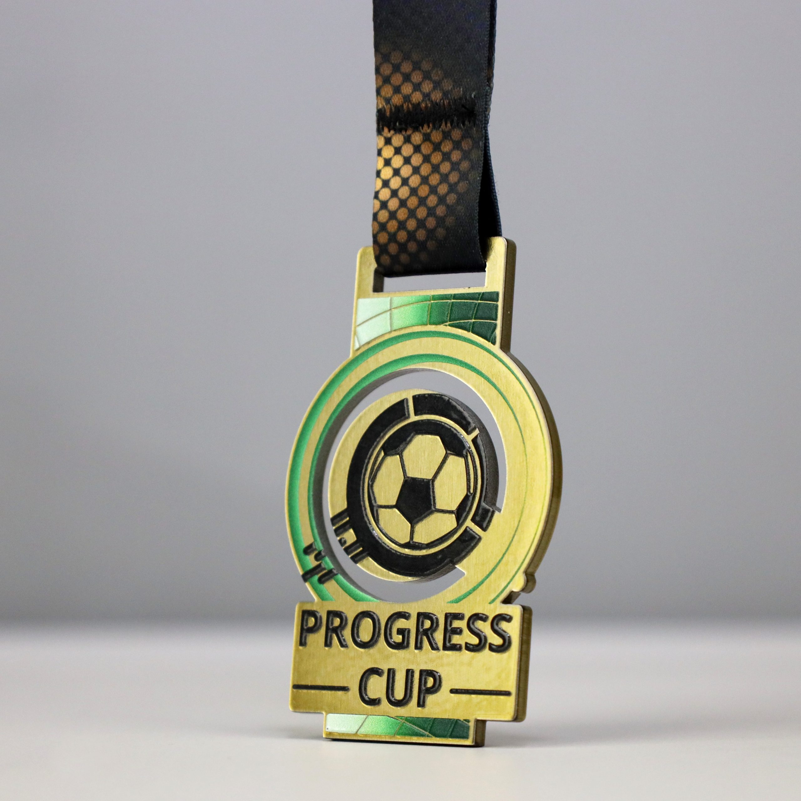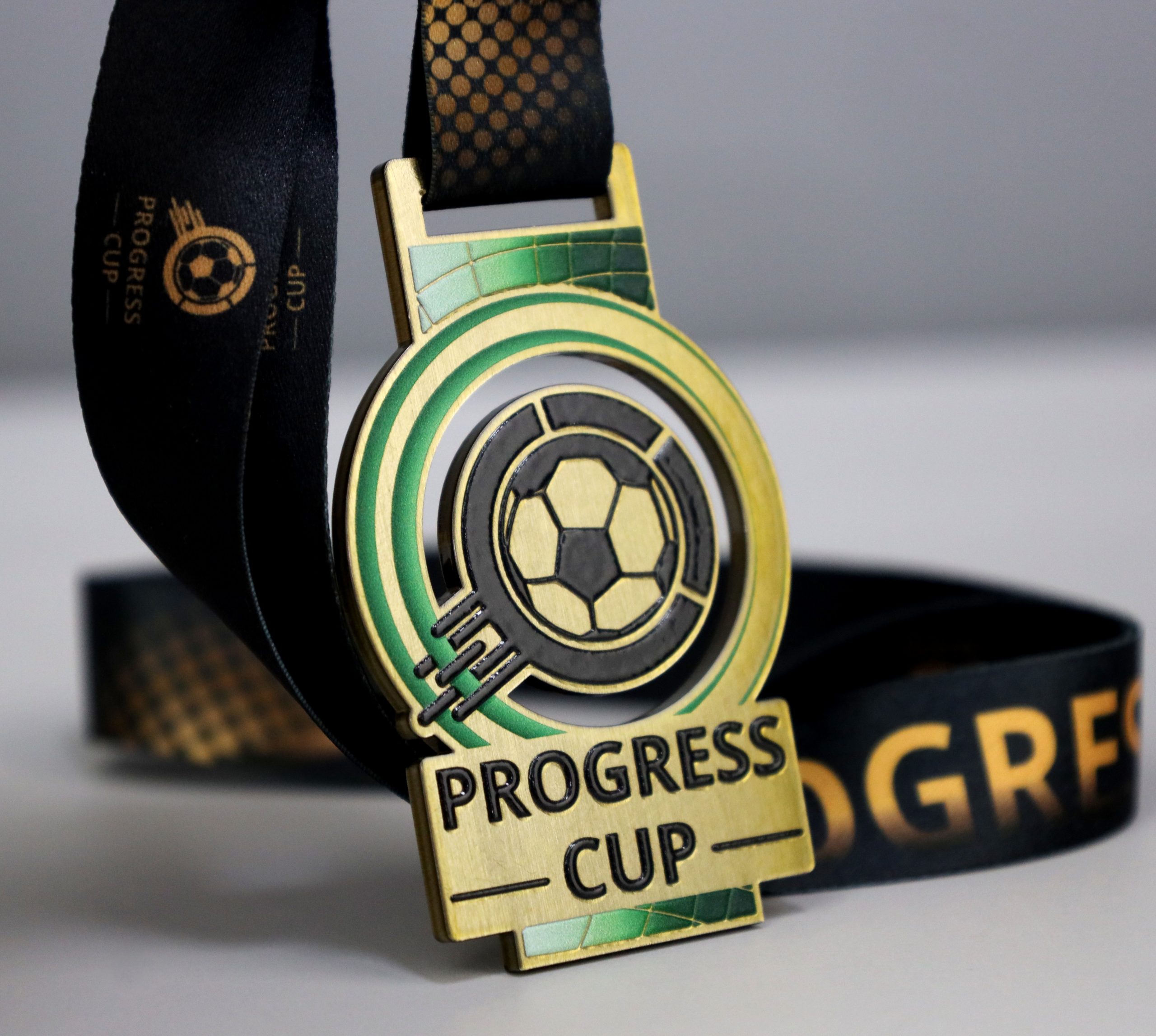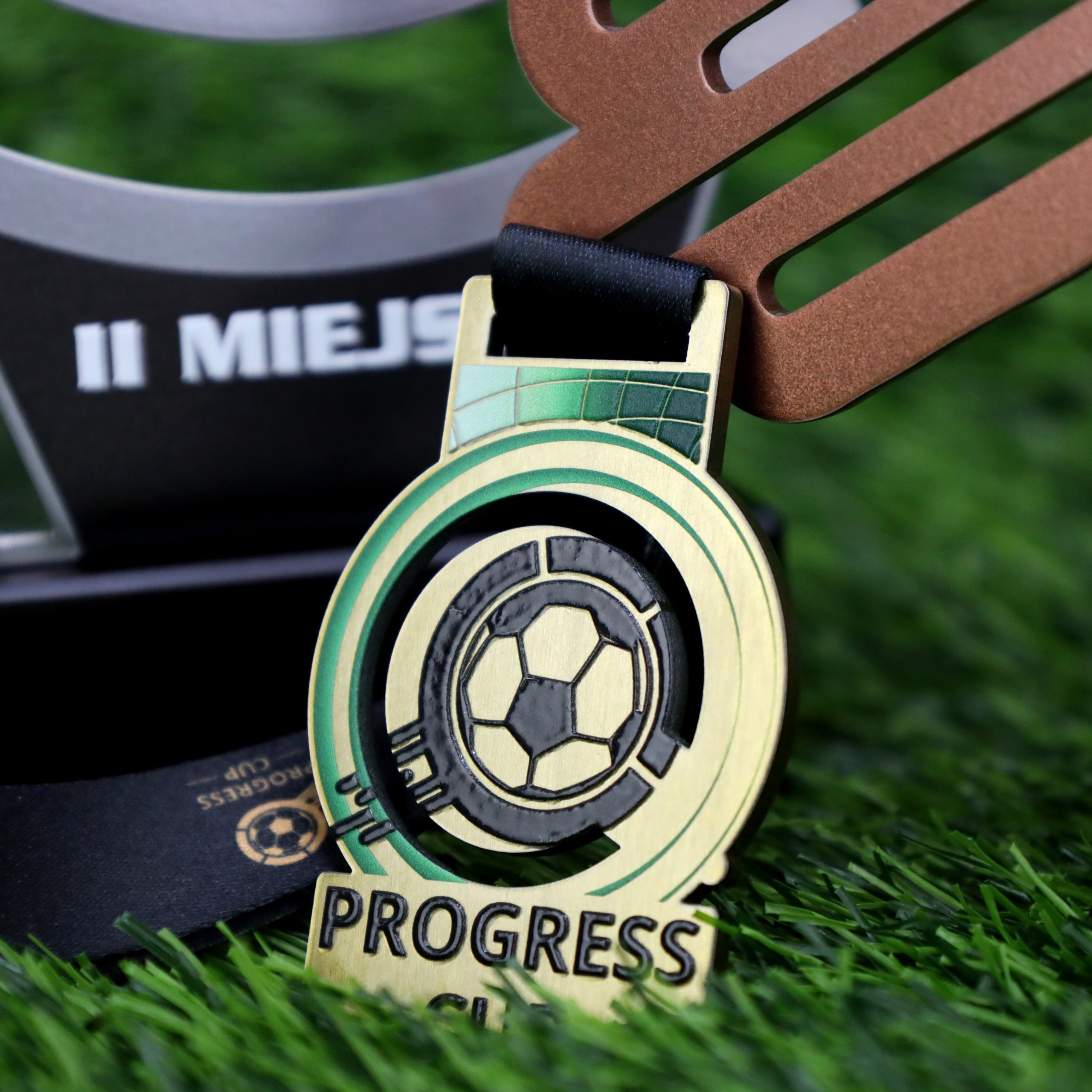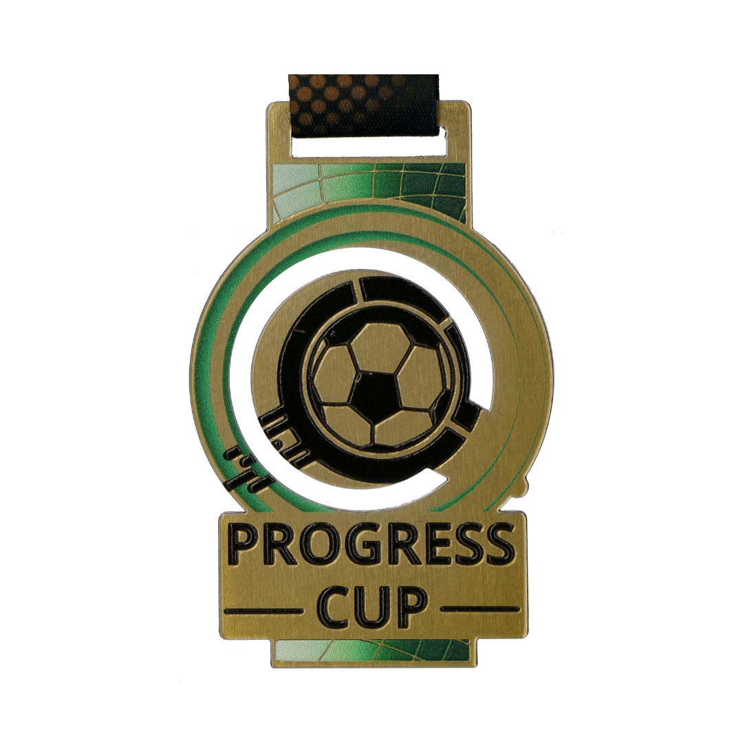 Medal stalowy wycinany laserowo Lasercut z wielowarstwowym nadrukiem UV. Medal wykonany w zestawie z pucharami oraz statuetkami na jeden z bardziej prestiżowych turniejów dla dzieci w Polsce. Nagrody zaprojektowane indywidualnie w 3 kolorach adekwatnych do miejsc 1-3 i wstążką personalizowaną. Progress Cup w Kleszczowie ciągle się rozwija a jego dynamika i model może inspirować inne tego typu wydarzenia.