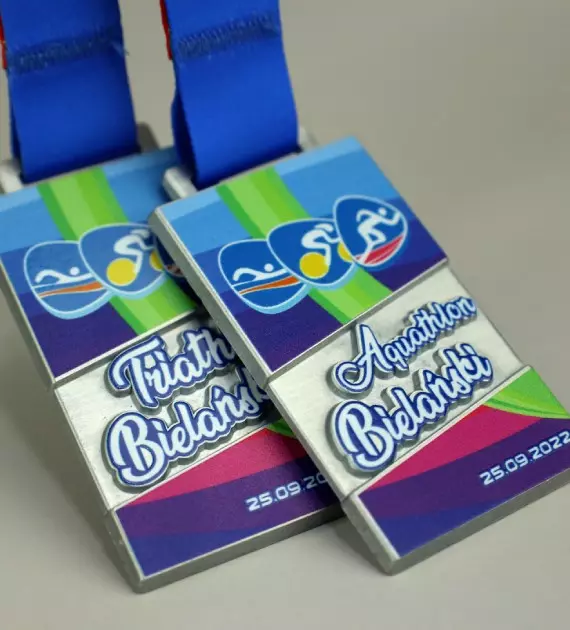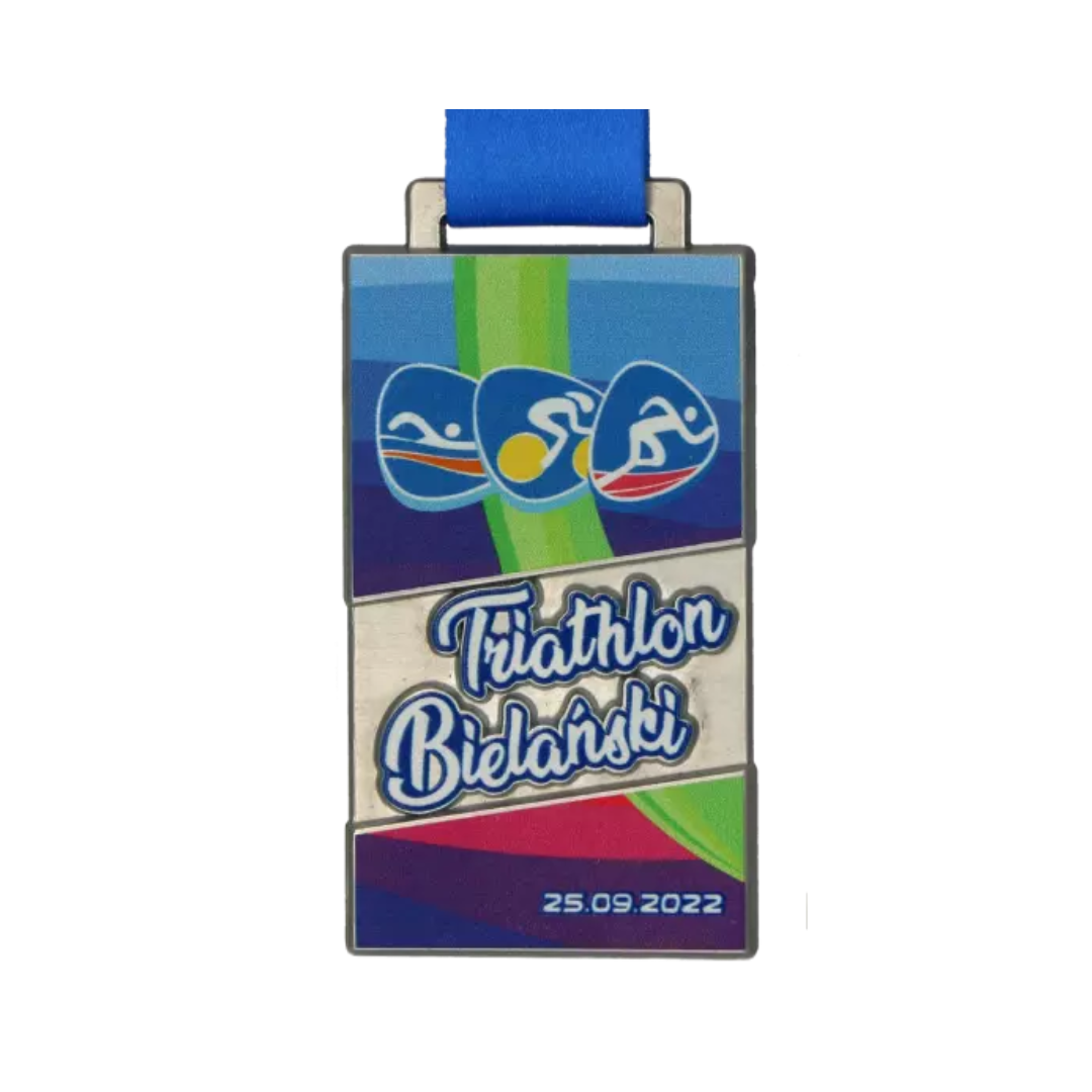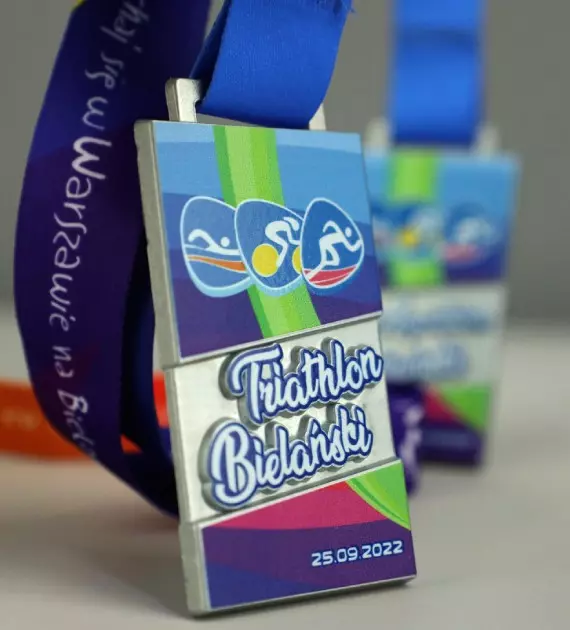 Medal odlewany Vision z kolorowym nadrukiem UV. Nagroda odlewana którą w większości pokrywa kolorowy, trwały nadruk UV. Wykonana na Triathlon Bielański aby wynagrodzić uczestnikom trud i wysiłek włożony w zawody. Wydarzenie dzieliło się na Triathlon i Aquathlon. Wybierając Triathlon Bielański, zawodnicy mieli do pokonania 400 m pływania, 12 km kolarstwa oraz 4 km biegu przełajowego. Z kolei uczestnicy Aquathlonu, mogli być początkującymi zawodnikami bowiem musieli przebyć 200 m płynąc oraz 1 km biegnąc.
