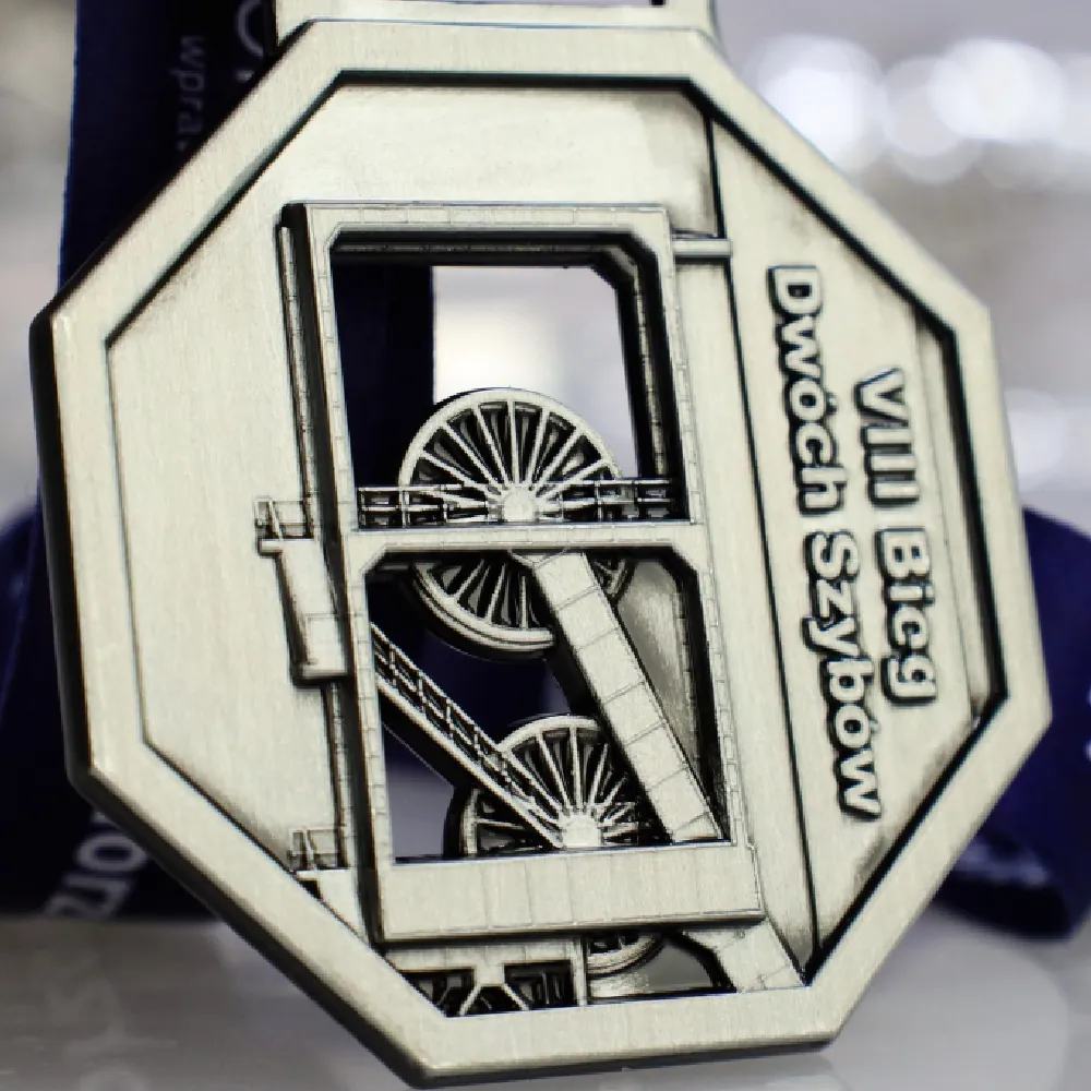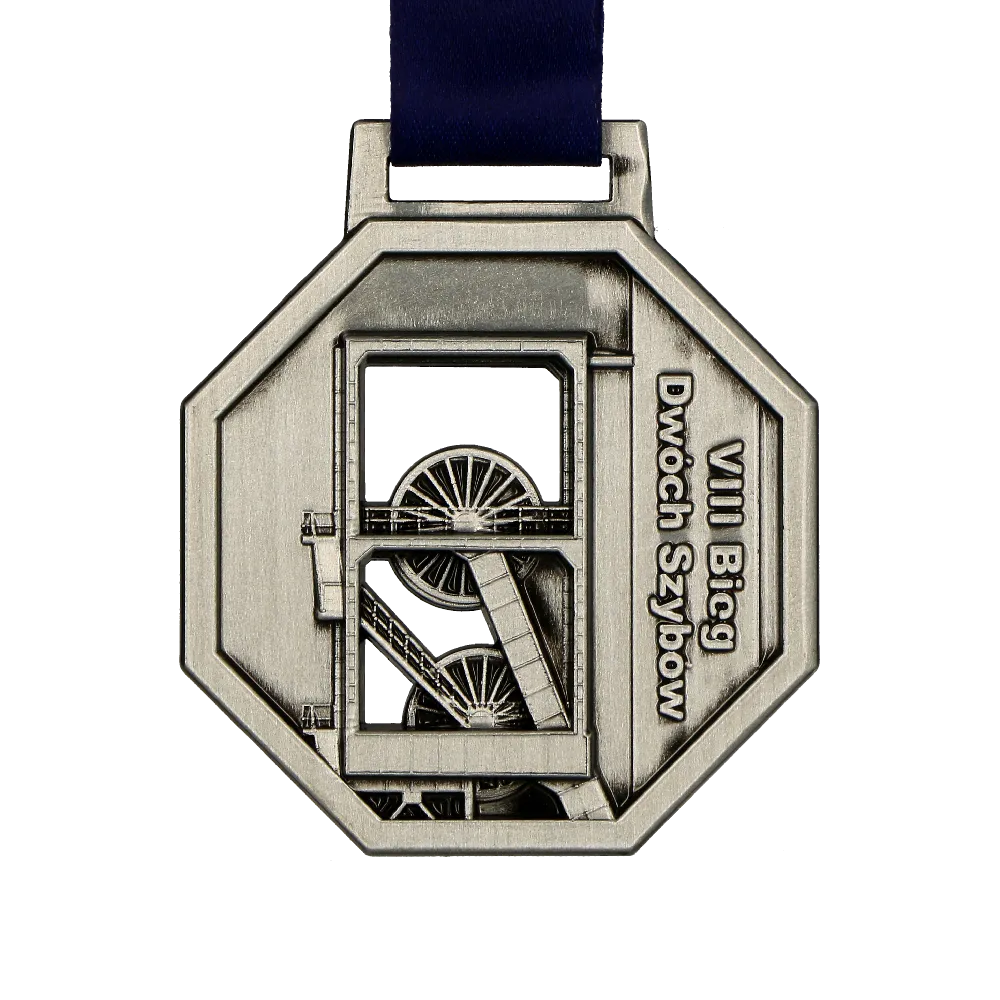 Medal odlewany 2D z przetłoczeniami na awersie oraz ażurami (prześwity). Nagrodę po raz kolejny mieliśmy przyjemność wykonać na Bieg Dwóch Szybów tym razem już VIII edycję biegu który odbywa się cyklicznie na Górnym Śląsku.