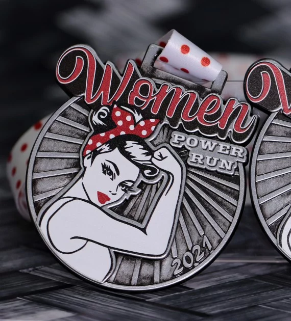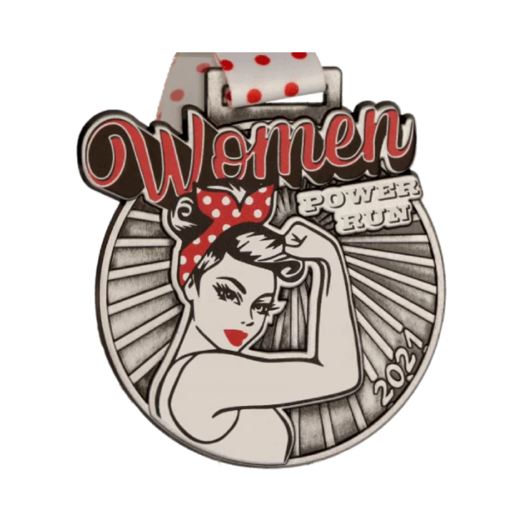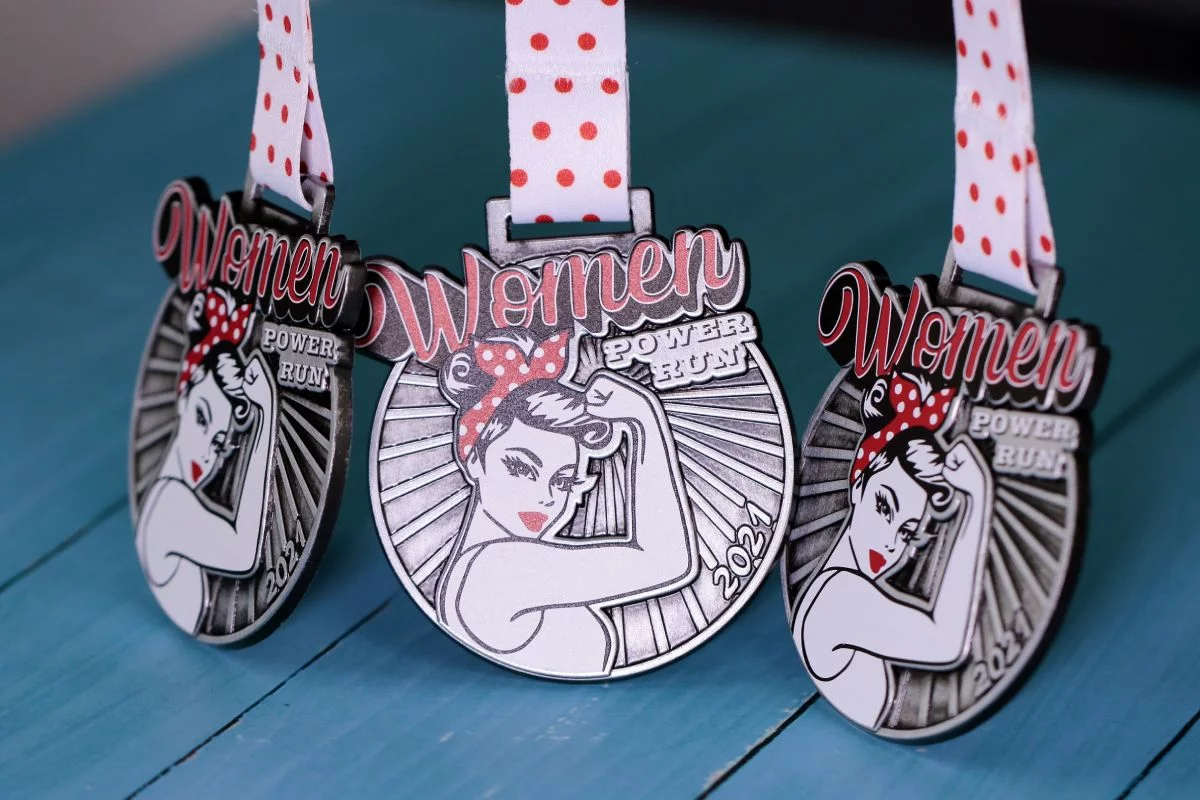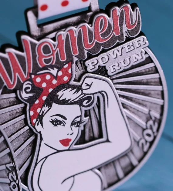 Medal odlewany Vision z kolorowym nadrukiem UV. Wykonany na bieg w którym brały udział wyłącznie kobiety. Medale Vision charakteryzują się możliwością ponownego wykorzystania odlewu, a nadruk możemy zaprojektować nowy, to innowacyjny sposób na oszczędność i imprezy cykliczne.