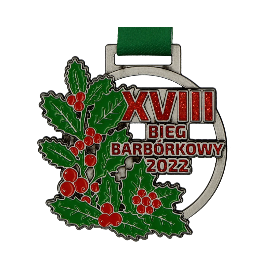 Medal odlewany 2D na XVII Bieg Barbórkowy w Rybniku. Świętowanie na sportowo tradycji Górniczej wpisało się już na stałe w kalendarz biegów. Na Barbórkę wykonaliśmy medale dla górników i zawodników biorących udział w biegu, ta realizacja zdecydowanie odbiega od typowych górniczych medali.