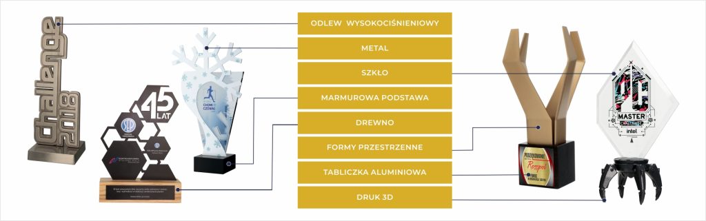 Do każdej nagrody podchodzimy indywidualnie. Staramy się wysłuchać potrzebę klienta i zaprojektować niepowtarzalną nagrodę która będzie się podobać i jest technicznie wykonalna.